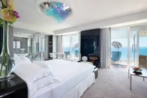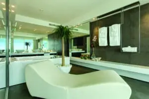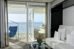 Il restyling delle 21 suite e del lounge riporta nella palette i toni di blu, bianco e sabbia, fa risaltare opere d’arte come il cavallo di Schifano e le sculture forgiate da Simon Benetton e introduce pezzi artigianali, tra cui pesci incisi da tronchi di recupero e lampadari a bolle d’acqua nella Loft Suite Aqua. Idromassaggio con area relax e cellar, più jacuzzi e sauna vetrata vista mare esterne arricchiscono la scenografica camera da 110 mq e la gemella Aria. La Sundeck Suite, invece, è campionessa del relax su amaca.